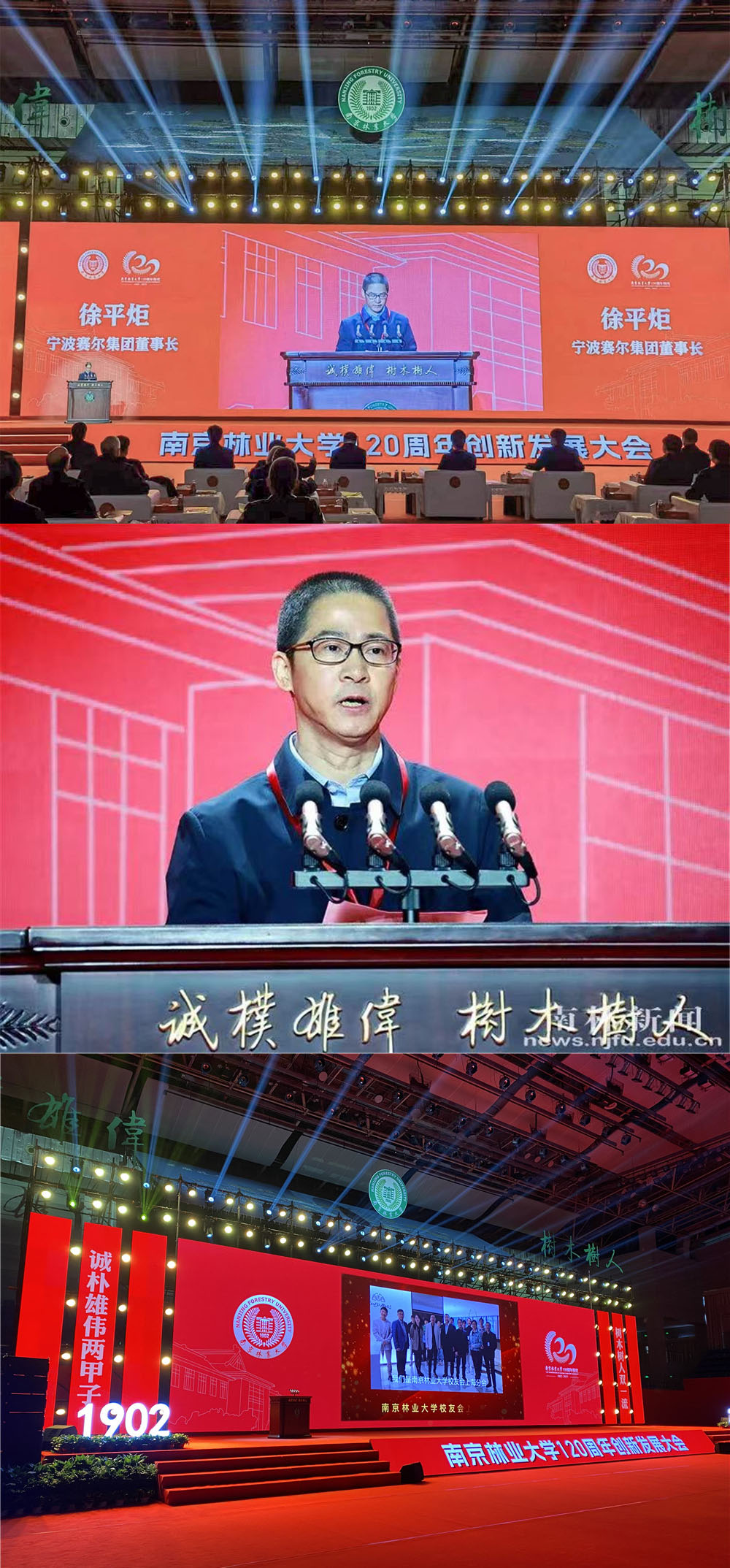 11月19日上午,南京林業大學120周年創新發展大會暨中國特色生態文明建設論壇開幕式隆重舉行。徐平炬董事長作為校友代表發言,他表示,南林以“替山河裝錦繡,把國土繪丹青”為使命,以國家和社會發展需求為己任,在人才培養、科學研究、社會服務、文化傳承與創新、國際交流與合作等方面均取得了輝煌成就,作為南林學子倍感驕傲和自豪。雖未從事與所學專業直接相關的工作,但南林大精神潤物細無聲式的熏陶,賦予了自己做人誠實有信,做事穩扎穩打的精神品質,這種品質早已熔鑄于血液中,滲透在骨髓內,成為商場激情拼搏二十多年的精神力量。感受著先賢梁希部長讓“黃河流碧水、赤地變青山”的豪情壯志,體會著南林大鄭萬鈞、葉培忠、陳岳武等科學家“國之大者”的情懷擔當,讓自己堅信,生活不僅是眼前一畝三分地,還有更高的理想和信念,以及詩和遠方。無論身在何方,母校是自己永遠的牽掛,反哺母校發展是應盡之責,未來愿為母校發展繼續盡自己的綿薄之力。