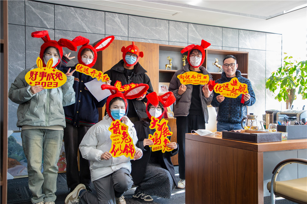 兔,是機敏和幸運的象征;兔年,將是非同一般的繁忙同時又是祥和平靜的一年。百舸爭流,奮楫者先;千帆競發(fā),勇進者勝!新的一年,相信每一位優(yōu)遠人將以嶄新的面貌、飽滿的熱情,書寫全新的故事。讓假期里長的肉,用工作瘦回去!