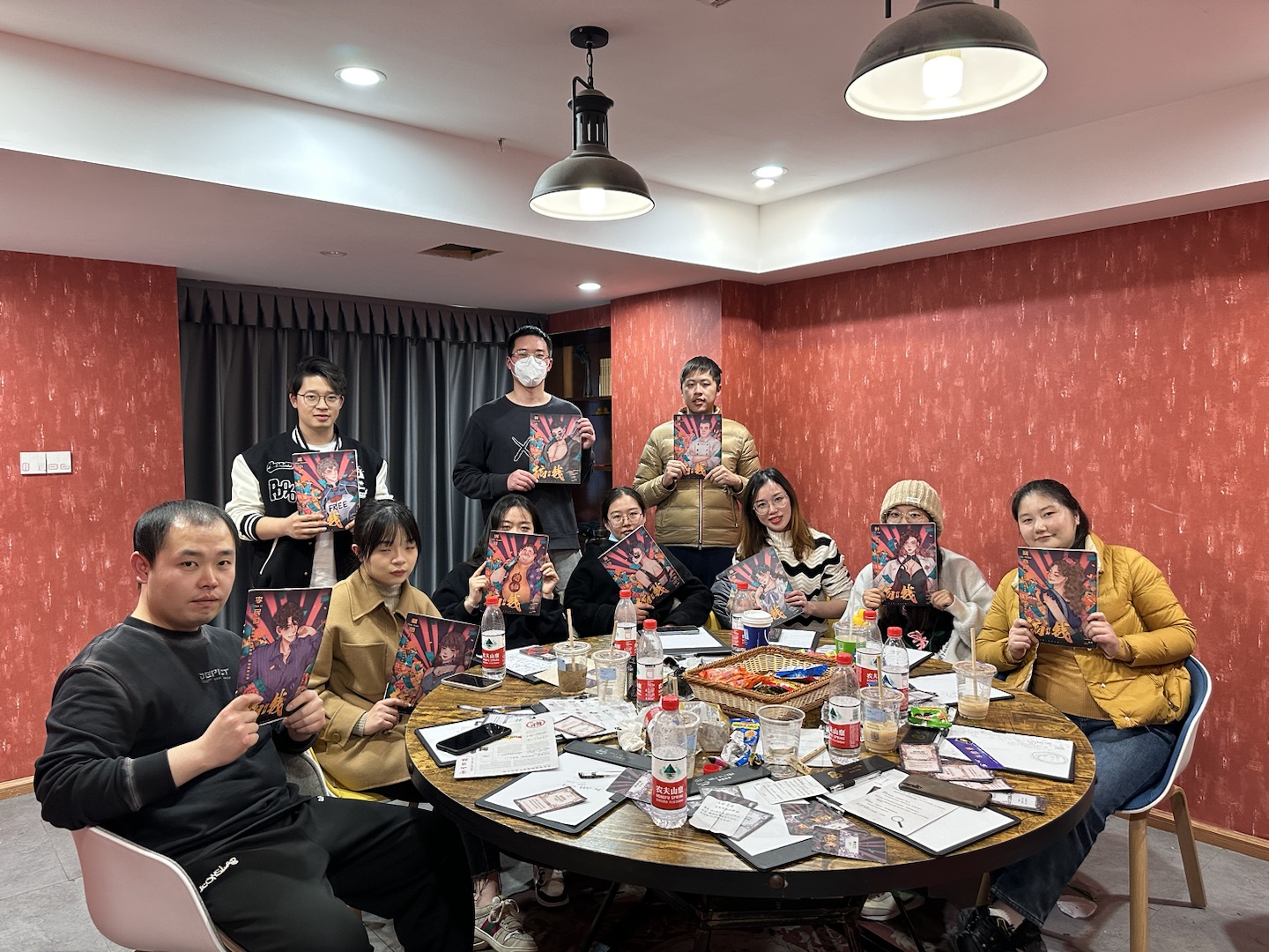 小伙伴們懷揣著激動和好奇的心來到劇本殺館,隨著DM的背景和人物介紹,大家紛紛代入不同情景。歷經四小時的“打打殺殺”,由嘯哥帶領的黃氏家族一舉殲滅其他二組,成為the king of the world!一頓操作猛如虎后,大家都有點饑腸轆轆,趕忙驅車前往自助餐廳。最終在各種小游戲的歡聲笑語中,我們結束了一天的愉快時光。
