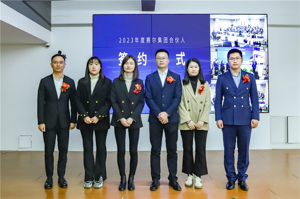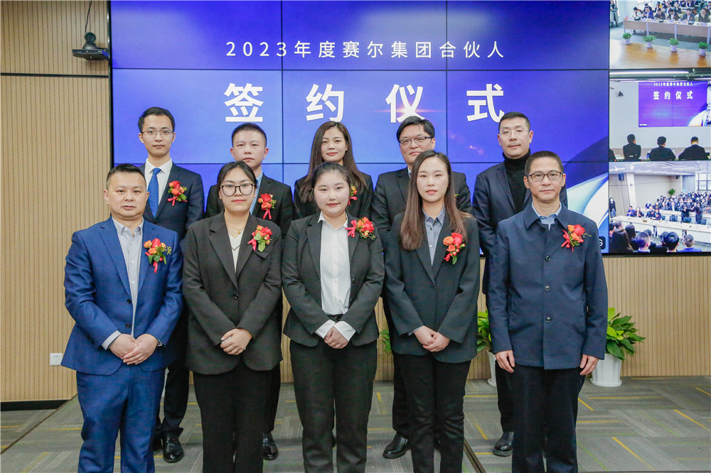會議舉行了每年一度的新合伙人簽約入伙儀式,這是令人歡欣鼓舞的時刻,一方面說明年年都有一批非常優(yōu)秀的同事在賽爾這個平臺上得到了很好的成長,另一方面也反映出合伙人平臺本身也在持續(xù)成長壯大。經(jīng)集團高級合伙人審議通過,集團紀福建、黃錢峰、蔣麗妮、優(yōu)越林品、優(yōu)景林亞芳、吳娟娟、金劍、優(yōu)鼎樓超、陳璐、任向明、楊含倩、優(yōu)達劉善仲、優(yōu)騰馬蕓媛、優(yōu)遠曾麗珍、威司那徐瑩瑩等15位同事加入集團合伙人團隊,集團合伙人總數(shù)增至147人。新合伙人代表優(yōu)越公司林品在發(fā)言中表示,作為95后,能夠加入集團合伙人團隊,是對其業(yè)務(wù)能力的認可,更是對他價值觀的認可,慶幸當(dāng)年在畢業(yè)后毅然選擇寧波這個與外貿(mào)息息相關(guān)的城市并加入賽爾這個大家庭,雖身處VUCA時代,但為能在集團持續(xù)擴大的外貿(mào)生態(tài)圈平臺上同向同行而倍感幸福。