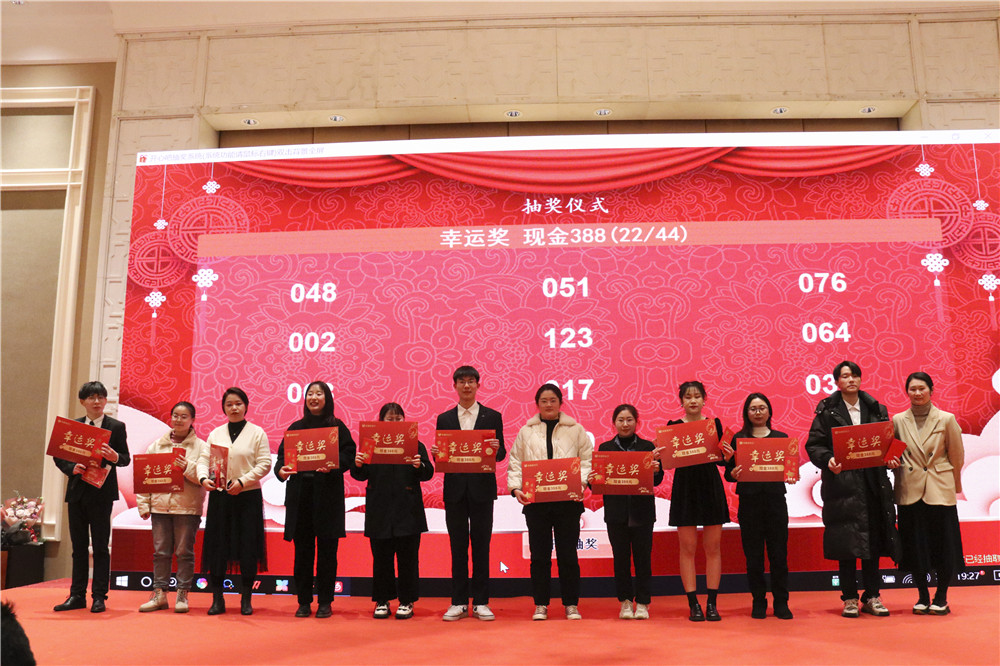 晚宴進(jìn)行時,新人紛紛閃亮登場進(jìn)行自我介紹,2022年第四季度各獎項得主也逐一揭曉,公司還為本命年同事送上了精心準(zhǔn)備的禮品。晚宴的氣氛被一輪接一輪的抽獎和搶凳子、踩氣球等小游戲推至頂峰,臺上的同事一展歌喉,大秀舞姿,臺下的同事觥籌交錯,言笑晏晏,整個會場洋溢著歡愉喜慶的氣氛。