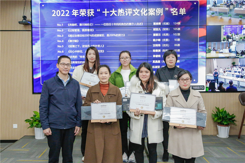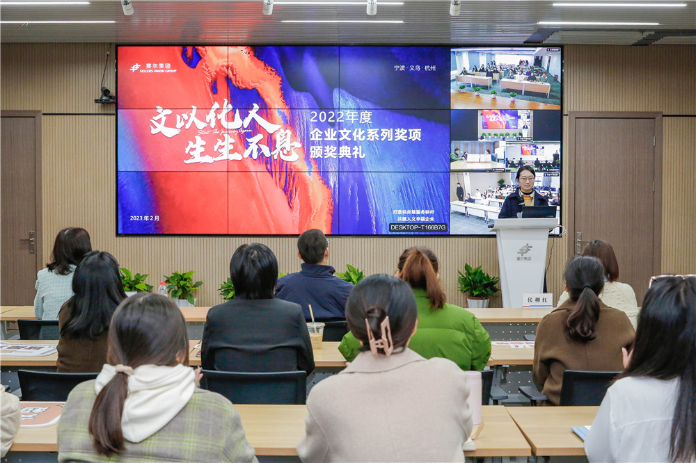 2月17日下午,集團2022年度企業文化系列獎項頒獎典禮順利舉行。寧波、義烏和杭州三地共53名代表參加,集團總裁徐平炬,集團副總裁王彩虹和方永強、優景公司總經理侯柳紅等出席活動。