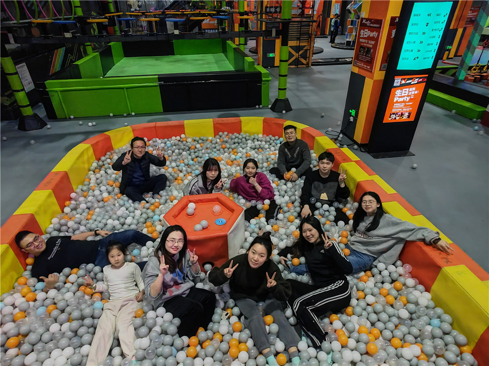 們告別冬季,迎來了嶄新的春天。為了激發各位小伙伴的工作熱情,增進與新同事之間的感情。綠時一部于3月25日開展了部門團建活動。本次聚餐地點選在鄞州萬達的桂堂。由于兩位新員工都不是寧波人,因此我們選擇先品嘗一下較為地道的本幫江浙菜。這里有香氣撲鼻的桂花茶、酸甜適當的桂花糖里脊、清爽的酸湯雪花肥牛卷、濃郁的奶磚冰淇淋…… 飯后閑談片刻,我們便起身前往四樓的魔力貓樂園。這里有很多項目,如蹦床、攀巖、碰碰車、VR等等。在這里,大家都比工作時松弛了許多,每個人都在盡情享受游戲帶來的快樂。