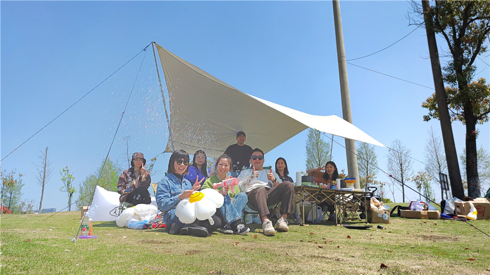 在支起的天幕下,兩位大廚忙碌地制作著美食,滋滋冒油的牛排、香氣撲鼻的雞翅、清新的越南春卷……午飯后,有人開始圍坐閑談,有人放起了風箏,還有人開始了飛行棋大戰,小小的露營區充滿了大家的笑聲。夜色初上,我們才收拾行囊回家。