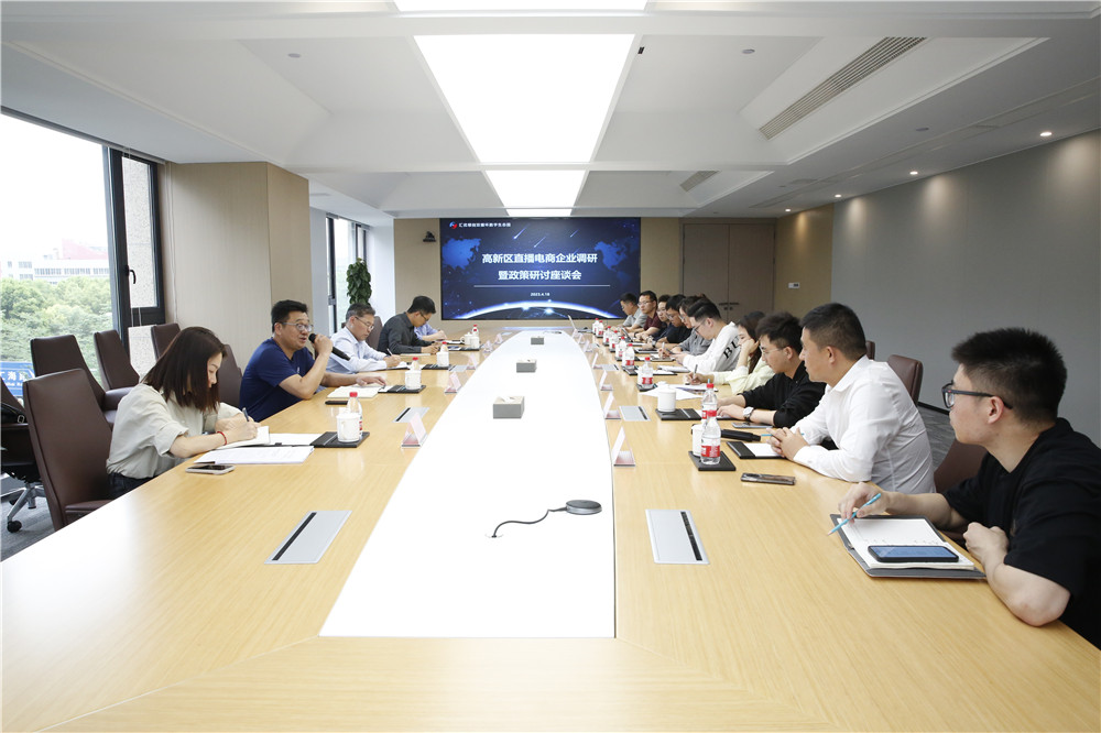 4月18日下午,寧波市商務局副局長葉文濤、寧波市商務局電商處處長涂曉錦、副處長陳曉峰、寧波市電子商務研究院主任趙勁濤、高新區(qū)經(jīng)發(fā)局副局長邵孟力一行蒞臨匯優(yōu)領創(chuàng)雙循環(huán)數(shù)字生態(tài)園調(diào)研走訪,并與7家高新區(qū)直播電商企業(yè)開展政策研討座談會,會議由涂曉錦處長主持。集團總裁助理馬科成、行政副總經(jīng)理方芳熱情接待領導一行。