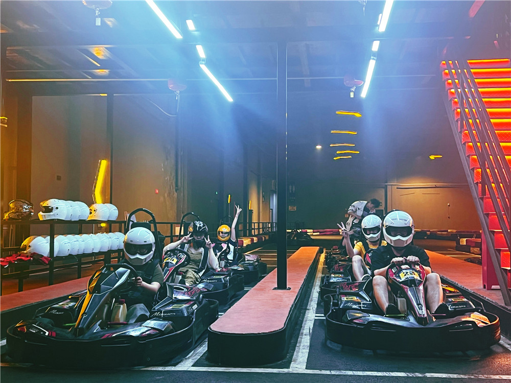 第一站當然是先填飽肚子。聚餐地點選在老店鹵鵝——一家充滿生活氣息的潮汕菜館。燒臘拼盤、招牌鹵鵝、鹽焗大蝦統統都到碗里來,為接下去的活動加滿能量。第二站是F3體育世界,也是本次團建活動的核心環節所在地。進入場地,地下車庫配合輪胎制成的護欄撲面而來一股賽博朋克的氣息,小伙伴們摩拳擦掌,躍躍欲試。在輪番進行卡丁車培訓后,大家戴上頭盔,共同上演《速度與激情》賽爾特別篇。彎道飄移,上坡下坡,耳畔傳來的風聲伴隨著發動機的轟鳴讓賽事更加激烈。在興奮的尖叫和吶喊中,大家似乎都忘卻了疲憊,只剩下一往無前的沖勁。狂野的卡丁車項目后,我們來到場地另一邊學習射箭技巧。從拿箭、搭箭、拉弓、瞄準到射箭,大家都是第一次接觸弓箭,新鮮感十足,不一會兒空靶子就變成了“小刺猬”。半小時的射箭體驗很快過去,我們出發前往下一站銅鑼灣KTV。適逢張韶涵演唱會,沒搶到門票的我們索性把包廂變成了張韶涵專場,在音樂和燈光中釋放壓力。兩個小時唱罷,肚子開始叫了起來,民以食為天,我們從吃啟程,也以吃為終點。大家伙兒到了海底撈,為6月生日的同事舉行了生日派對。