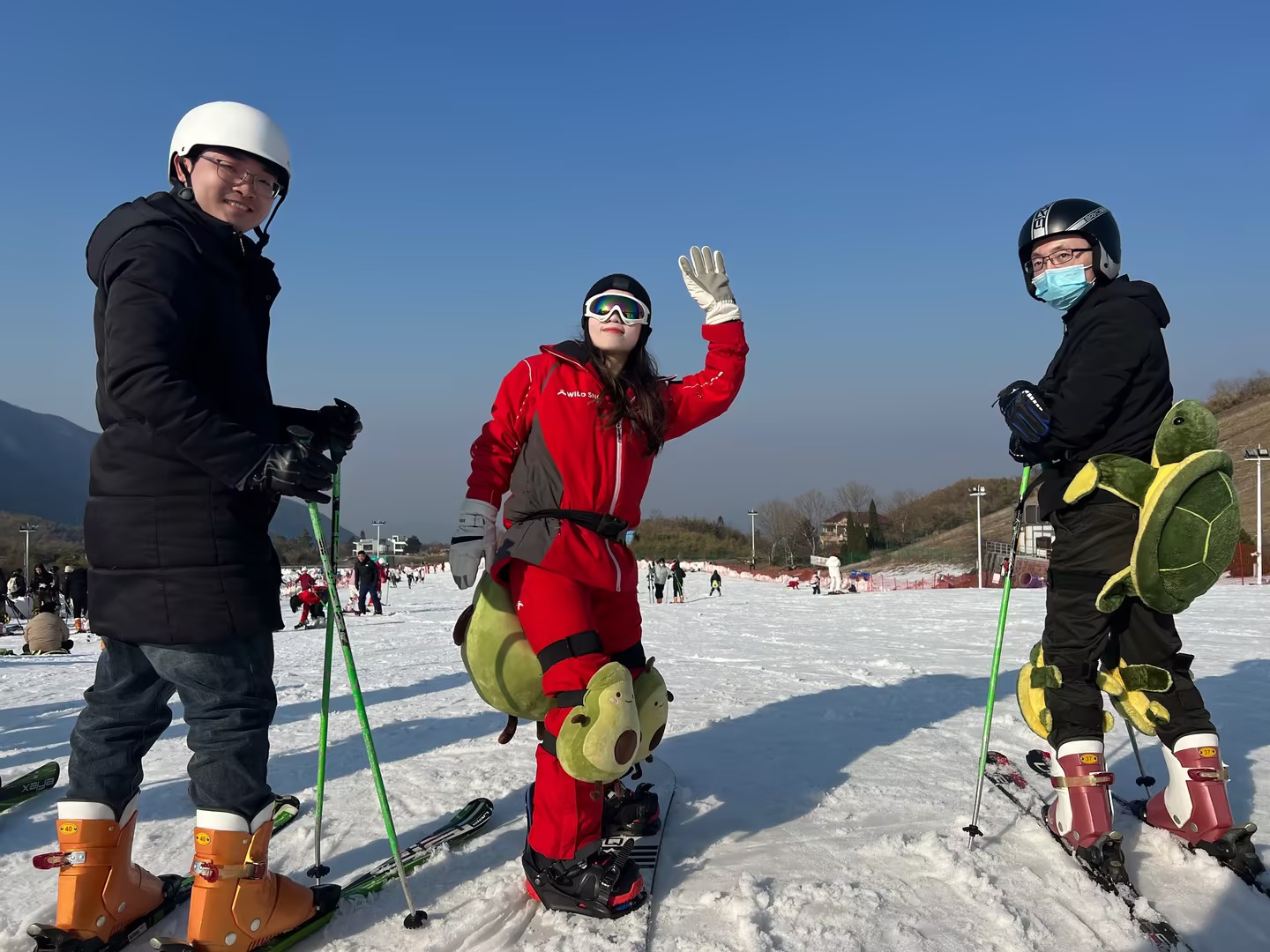 離開竹博園,已經到了飯點,在享受完美食后,我們便開啟了挑戰與解壓之旅,近50鐘車程后,我們來到了浙北江南天池。在滑雪場上,對于從未接觸過滑雪運動的我們來說,是一個極大的挑戰。在簡單的了解及適應后,小伙伴們并開啟了挑戰之旅,小伙伴們互相鼓勵,互相幫忙,在一次次的跌倒,一次次的重新爬起;從2米一倒,到能夠一滑到底,遙遙領先。人生又何嘗不是這樣子,從嬰幼兒時期蹣跚學步,到健步如飛,這就是一個跨越。