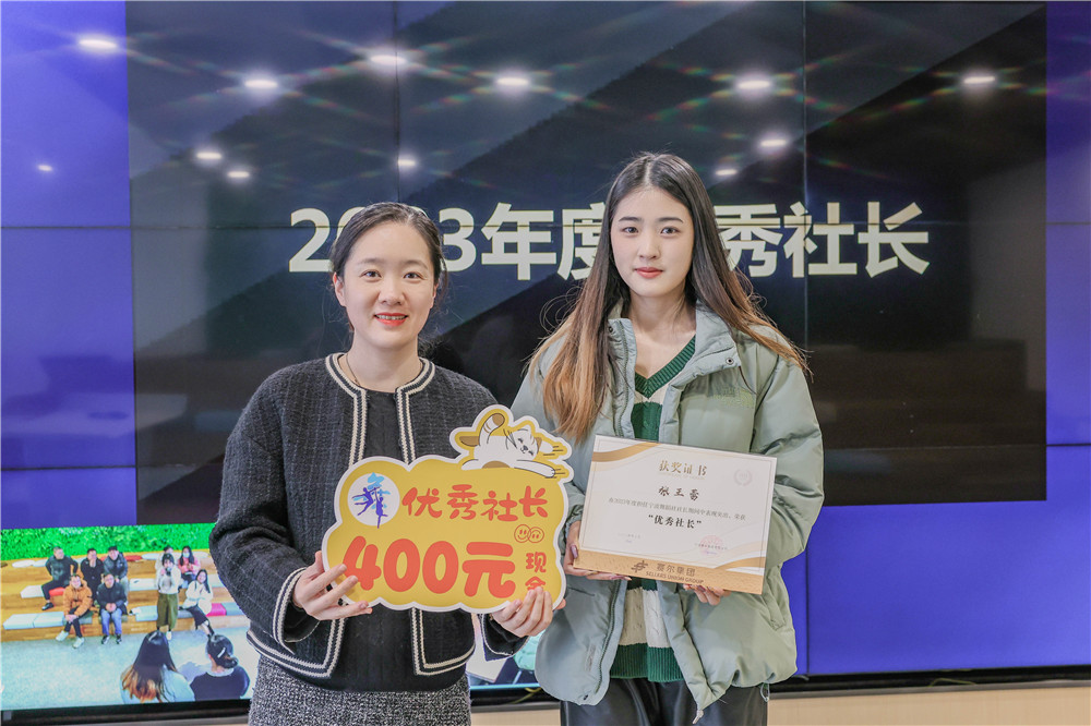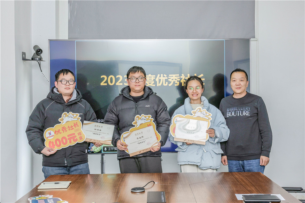 會議回顧了2023年社團工作情況并表彰了2023年度優秀社長。集團十大興趣社團依然是“年輕人興趣歸屬和歡樂集聚地”。社團全年組織開展活動239場次,輻射超4300人次。“賽爾周”期間,部分社團策劃組織了誰“羽”爭鋒、“五”們組個球、吃雞大逃殺、星空音樂趴等主題活動;組織了初級俄語課、“同唱一首歌”課程、2023年籃球嘉年華活動、2023年迷你馬拉松比賽、書籍交換圖書市集等日常專屬活動;綠茵社、籃球社等積極代表集團參與區級及以上大型比賽,鏈接外部兄弟公司,綠茵社榮獲2023年高新區八人制足球比賽單位組冠軍榮譽稱號。根據優秀社長評選辦法,寧波舞蹈社張王蕾、義烏樂跑團鄭國棟、義烏籃球社樓旭鋒、義烏愛樂社程雪琴等4位社長榮獲2023年度優秀社長。隨后,來自優景公司的寧波舞蹈社副社長張王蕾作為優秀社長代表發言。她感謝集團為員工提供了自由發展興趣愛好的平臺,雖然在接手社團后遇到了一些困難,但從社長管理、運動健康、興趣愛好、人脈資源等各方面來看,自己收獲頗多。未來,自己將“在其位,謀其事,盡其責”,服務好每一位社員,讓社團變得更加多姿多彩。