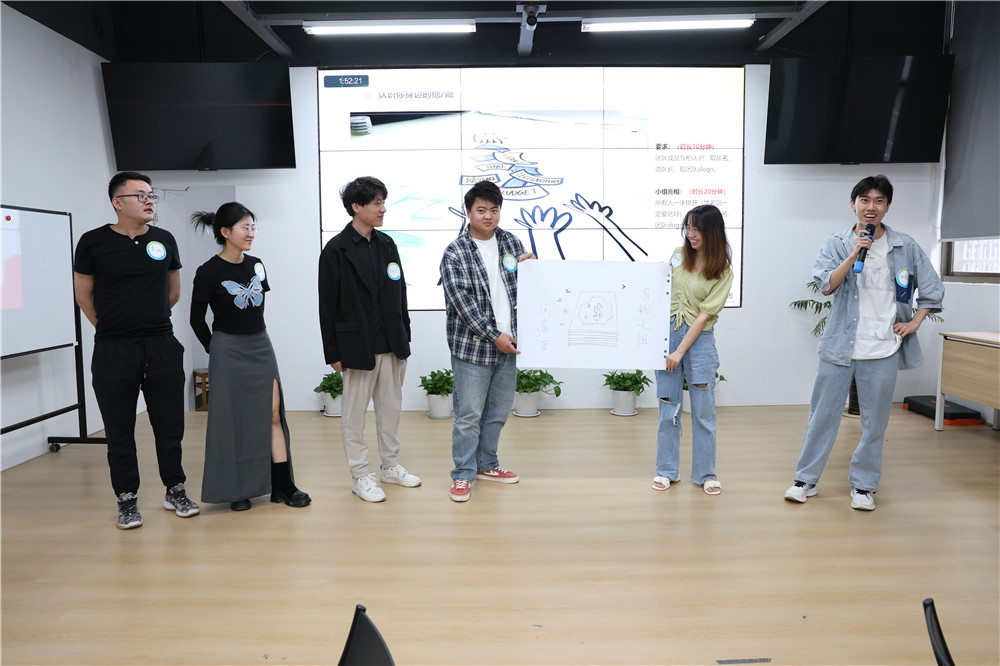 接下來便是為期三天的培訓,所有新人將在一起共同學習,新人之間的破冰是必不可少的環節。本次新人面對面,我們先從“認識你身邊的他/她”讓新人對組內小伙伴進行熟悉了解,再通過為小組選隊長、取隊名、slogn等形式組建團隊意識。最后通過挑戰平衡、極速五子棋、桌上冰壺三個游戲進行互動,加深大家的團隊意識。
