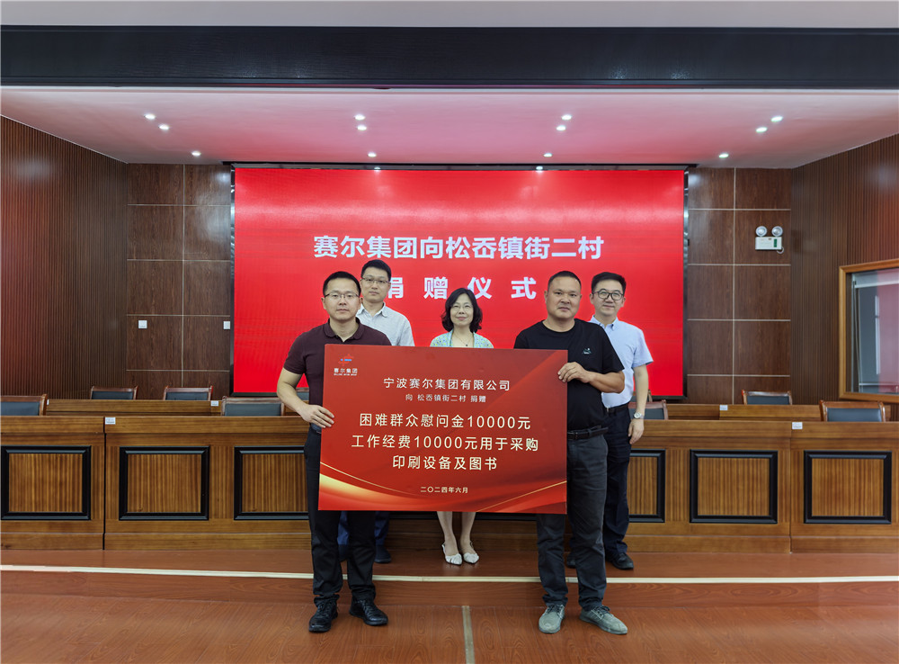 6月26日下午,賽爾集團向寧波市奉化區松岙鎮街二村捐贈困難群眾慰問金10000元,并提供工作經費10000元,專項用于購置印刷設備及圖書等,以支持松岙鎮街二村民生保障和文化繁榮。奉化區松岙鎮是寧波市商務局的包聯結對鄉鎮,賽爾集團作為我市熱心公益慈善事業的外貿企業,積極參與了此次捐贈活動。捐贈儀式上,寧波市商務局副局長、黨組副書記、二級巡視員韓雋,市商務局、市投資促進局的相關處室負責人、賽爾集團總裁助理馬科成,以及松岙鎮、村有關負責人共同出席。