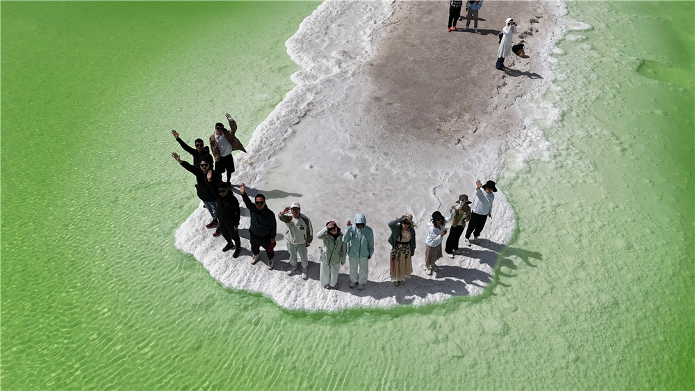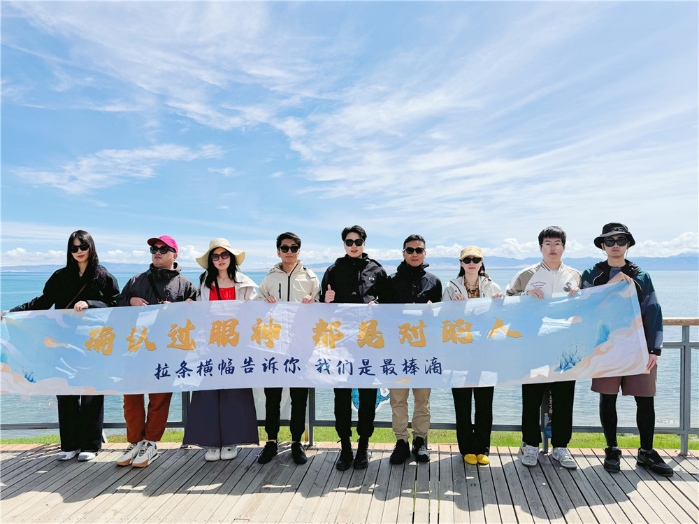 中國土地上鑲嵌著一顆璀璨的明珠,那便是青海湖。第一天的行程,七組來到了被譽為高原明珠的青海湖二郎劍景區,一望無際的湖面像一匹無邊無際藍色的錦緞,藍得純凈、藍得醉人,七組在藍寶石一般的湖面拉起了橫幅,大家紛紛擺出了七組標志性的動作—右手豎大拇指,隨后七組又去了被譽為“中國天空之境”的茶卡鹽湖,大家在鏡子一樣的湖面擺pose,拍合照,歡聲笑語充斥著美麗的茶卡鹽湖。之后的幾天,七組又前往了被譽為東方馬爾代夫的東臺吉乃爾湖,戈壁與湖泊共存的水上雅丹,水上雅丹驚險刺激的越野車讓人直呼過癮。到了晚上 ,大柴旦北緯37度的星空營地讓人感覺仿佛離開了地球表面,察爾汗鹽湖就像一顆夢幻青蘋果被遺落在了西北。