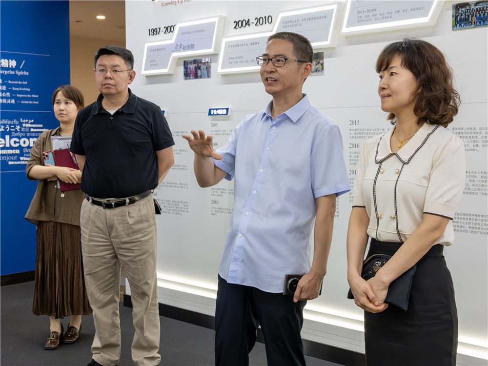 在賽爾集團企業文化展廳,徐平炬董事長向來訪領導介紹了集團自1997年成立以來的發展歷程、業務板塊及企業文化建設情況。他表示,經過二十多年的發展,賽爾已成長為創新驅動的外貿集團。近年來持續深化外貿生態圈布局,打造獨具特色的企業文化,為業務創新發展奠定了堅實基礎。